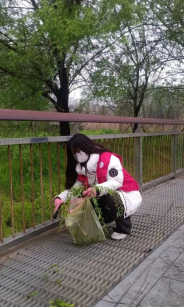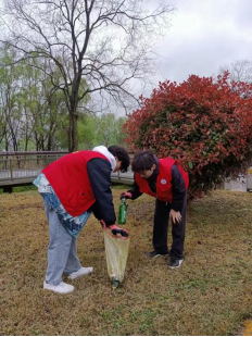天空中飘着蒙蒙细雨,但阻挡不了志愿者们坚定的步伐。在风雨中,他们两两合作,细心搜寻着每一个角落。他们戴着手套,提着塑料袋,捡拾着每一个烟头纸屑,不放过任何一个角落,就在他们一俯一仰之间,还了江畔一片洁净。在这个过程中大家互帮互助,虽然累在其中,也其乐融融。