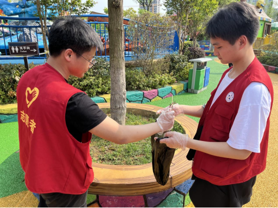 活动过程中,每位同学积极参与,志愿者兵分六路,寻找藏匿在公园角落的垃圾,他们手提垃圾袋,互相协作配合,对路旁绿化带的纸屑、饮料瓶、零食袋、烟头等废弃物进行了集中清捡。公园内,随处可见手持垃圾袋和夹子的志愿者们的身影,他们认真、细致,用实际行动改善公园环境。