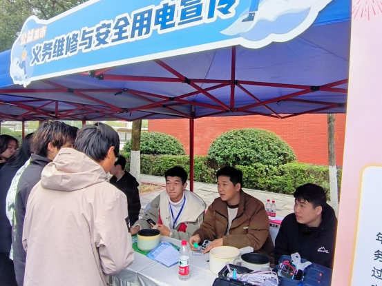为了提高校园内的安全用电意识,确保大家的生命财产安全。3月5日,我院在集贤公寓门口开展了义务维修与安全用电宣传活动。团总支书记刘骏鹏与志愿者同学们一起宣传安全用电相关知识。