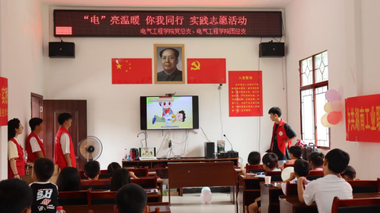紧接着,“三下乡”实践团开展了关爱留守儿童公益活动,志愿者为小朋友们讲解了用电安全相关的知识,通过互动问答的方式,小朋友们不仅收获了文具和小玩具,还增长了知识。随后,一场别开生面的“吹气球比赛”将现场气氛推向高潮,小朋友们脸上洋溢着快乐的笑容。