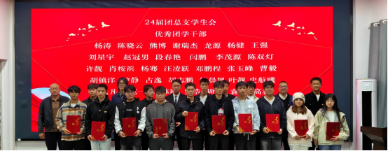 在新任干部就职环节,新任团总支副书记周晓琦同学代表新一届学生会发表就职演讲,表示将继承优良传统,勇于创新担当。大会还对第24届团总支学生会优秀团学干部进行了表彰,杨涛、陈晓云、熊博等30名同学获得"优秀团学干部"荣誉称号。
