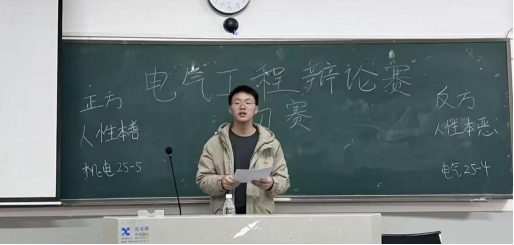 为锻炼学生思辨能力、语言表达能力与团队协作精神,10月22日晚,电气工程学院2025年“新生杯”辩论赛在尚善楼1211教室正式拉开帷幕。本次活动由学院团学学风建设部组织,自启动以来便受到2025级新生的广泛关注与踊跃报名,现场气氛热烈,展现出新生积极参与校园文化活动的蓬勃朝气。