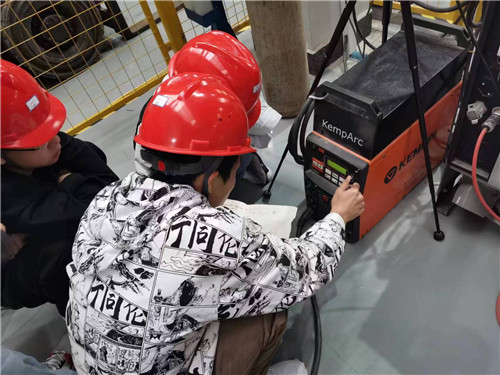 “要培养一名合格的现场工程师,要让学生拿到任务后,能根据材料、形状、尺寸、形式来制定机器人焊接方案,包括使用多大的电流电压、多少温度、什么时候分道、分层等,并且在执行过程中能解决实际问题。”培训班班主任、我校电气工程学院教师彭雯介绍,“现场工程师”对学生的综合素养要求较高,既要懂理论又要懂实操。此次培训内容由校企双方老师共同承担,其中精益管理与职业素养模块由企业老师负责,机器人现场编程技术、手工焊接技术、焊接机器人技术模块由我校老师负责。