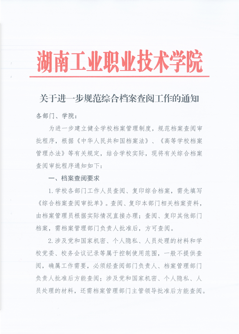关于进一步规范综合档案查阅工作的通知