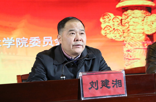 党委书记刘建湘同志代表学校领导班子作工作总结报告、作2018年度干部选拔任用工作情况报告,并作个人述职报告