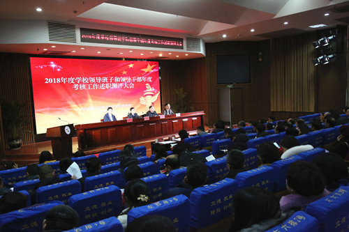 会上,学校党委书记刘建湘代表学校领导班子,从“把方向、管全局,领导班子科学谋划促进新发展”“抓重点、促融合,领导班子改革创新推动内涵建设”“抓思想、保平安,领导班子依章治校促进和谐校园建设”“抓基层、强根基,领导班子从严治党提升党建工作水平”四个方面对2018年度领导班子工作进行了总结,并作2018年度干部选拔任用工作情况报告和个人述职报告。学校党委副书记、校长向罗生同志作个人述职报告。其他校领导进行了书面述职。