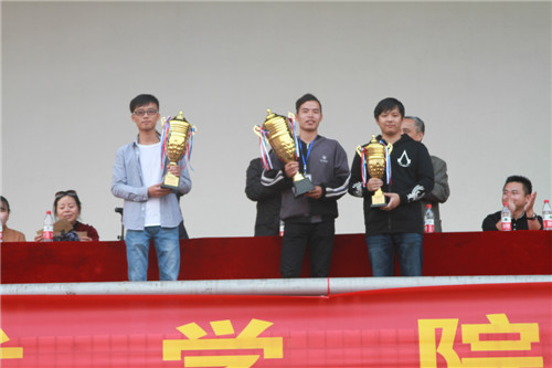 邓建国宣布了学生代表队和教职工代表队获奖名单:在学生组比赛中,获得优秀组织奖的学院分别是工业设计与艺术学院、电气工程学院、信息工程学院、商务贸易学院;机械工程学院、汽车工程学院、经济管理学院分别荣获团体总分冠、亚、季军。在教职工组比赛中,获得优秀组织奖的是工业中心分工会,学保机关三分工会获道德风尚奖,经济管理学院分工会、汽车机关二分工会、电气工程学院分工会分别取得团体总分冠、亚、季军。