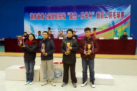 11月27日至28日,由湖南省高等职业教育体育教学研究会主办、湖南省交通职业技术学院承办的湖南省高职院校第七届“院长杯”羽毛球混合团体赛在湖南交通职业技术学院体育馆隆重举行。在学院领导和院工会的大力支持下,以副院长张志勇为领队、调研员刘琼为参赛院领导的我院教职工代表队参加了第一双打、混合双打、男子单打、女子双打、男子双打等五个团体项目的比赛,通过小组赛、复赛等几个环节、历时两天的激烈角逐,我院代表队最终荣获团体赛三等奖和体育道德风尚奖。