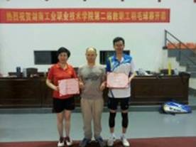 在闭幕式上,教职工羽毛球协会龙凌会长宣布了比赛结果:机械工程系分工会获得团体第一名,汽车学院---机关2分工会、经管系分工会、商贸系分工会分获二、三、四名;曾石山获男子单打第一名,李泽平、李强分获二、三名;任辉获女子单打第一名,曾盛誉、许英分获二、三名;李陟威、刘念获男双第一名,彭跃湘、龙凌及涂岭、范明昊分获二、三名;陈方、刘琼获混双第一名,李陟威、饶显俊及郑志凌、郭杰分获二、三名。
