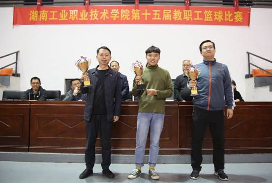 据悉,在本届篮球比赛中,商贸学院分工会和机械机关分工会获得一等奖,信息学院后勤离退分工会、经管学院分工会、继教实训分工会获得二等奖,汽车学院信息中心分工会、艺术学院分工会、电气学院分工会获得三等奖,王沐老师获得篮球赛“三分王”称号,获得最佳组织奖的是信息学院后勤离退分工会,道德风尚奖由经管学院分工会获得。