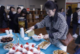 在汽车工程学院3D打印学院大厅,女老师们一边品尝眼前琳琅满目、香味四溢的各式冷餐,浅酌一口咖啡、手打柠檬茶等美食,一边欢愉地交流各自的工作、生活,幸福洋溢脸上,现场一片欢声笑语。舒适的环境和氛围让老师们在工作之余放松身心,感受慢生活的快乐。