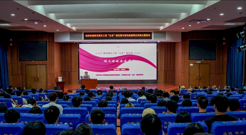 6月3日下午,华东师范大学国际航运物流研究院院长、教育部关工委“五老”报告团专家包起帆同志来校作《明天你也会是劳模》的专题报告。我校党委副书记成涛同志主持报告会。