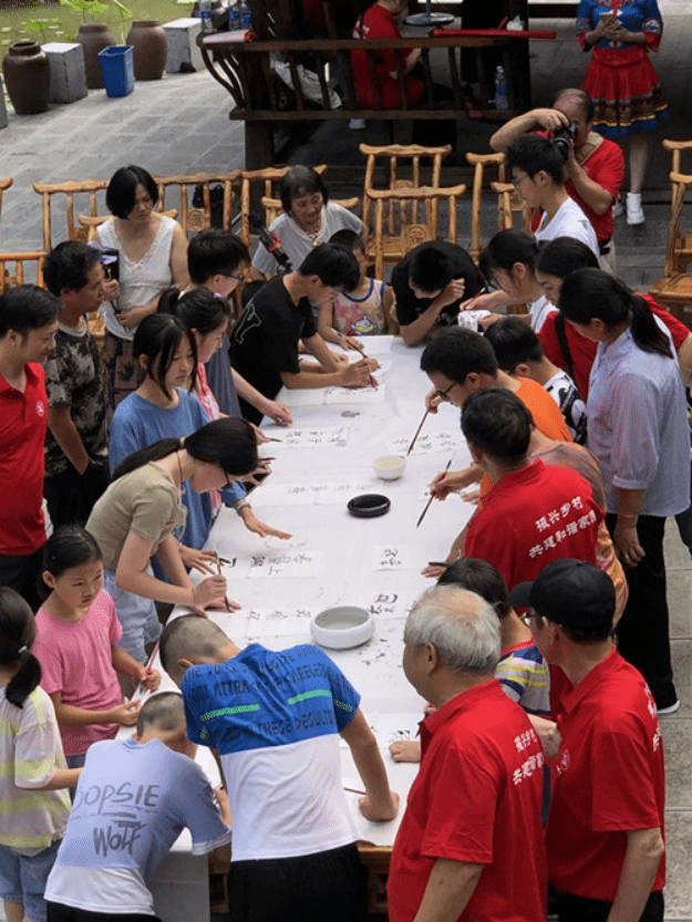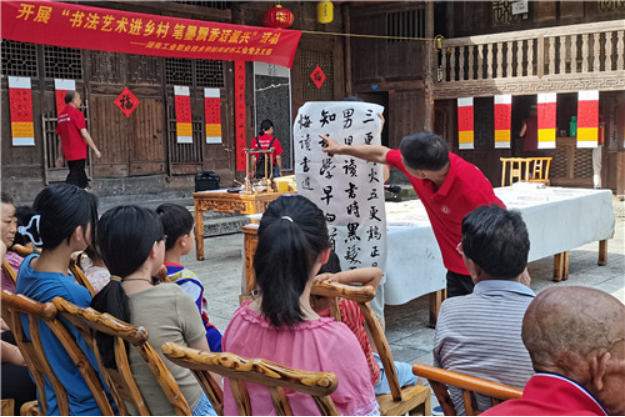 学校退休书画协会的老同志们为这次活动提前书写了160多幅精美的书法作品,还现场创作了书法、绘画作品30余幅,并全部送到村民手中。