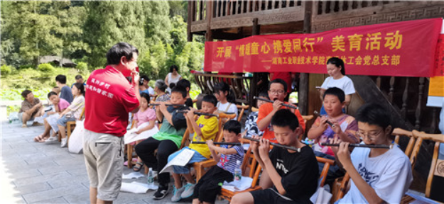 群山绵延起伏,荷叶摇曳生姿,溪流潺潺,笛声悠悠……这样诗情画意的美景出现在头车村村子里,这是离退休二支部书记范金洪为孩子们打造的笛子启蒙教育课现场。范金洪从基础乐理知识、竹笛的吹奏方法、如何培养对乐器的兴趣等方面进行讲解。