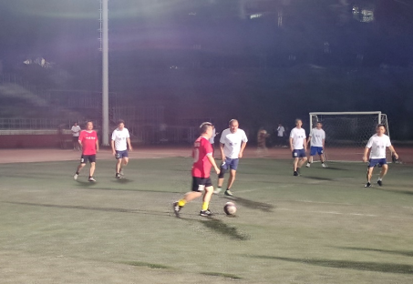 2023年10月16日下午18点,第十一届“湖南工院杯”教职工足球赛第五轮比赛在学校运动场进行。