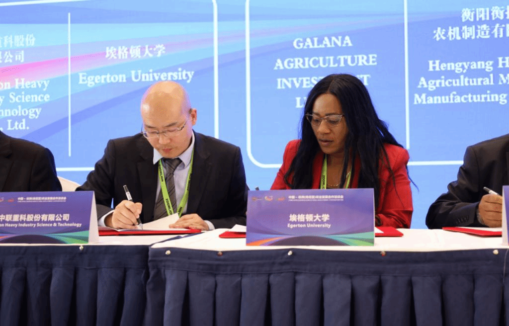 开幕式当天,中联重科副总裁孙昌军受邀参加“中国—非洲(肯尼亚)农业发展合作洽谈会”,分享了中联重科农业机械的丰硕发展成果,以及中联重科农业机械在非洲发展情况和未来的战略规划。论坛现场还举行了项目签约仪式,其中中联重科与埃格顿大学签订了农业机械化课程的合作协议,为非洲农业机械化提供新助力。