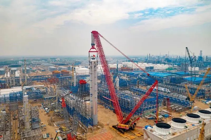 SCC40000A是三一与山东海湾吊装工程股份有限公司根据施工需求,自主攻关研发的超大吨位履带式起重机,最大起重力矩90000吨米,最大起重量4000吨,拥有20余项发明专利,其中两项为国际发明专利。