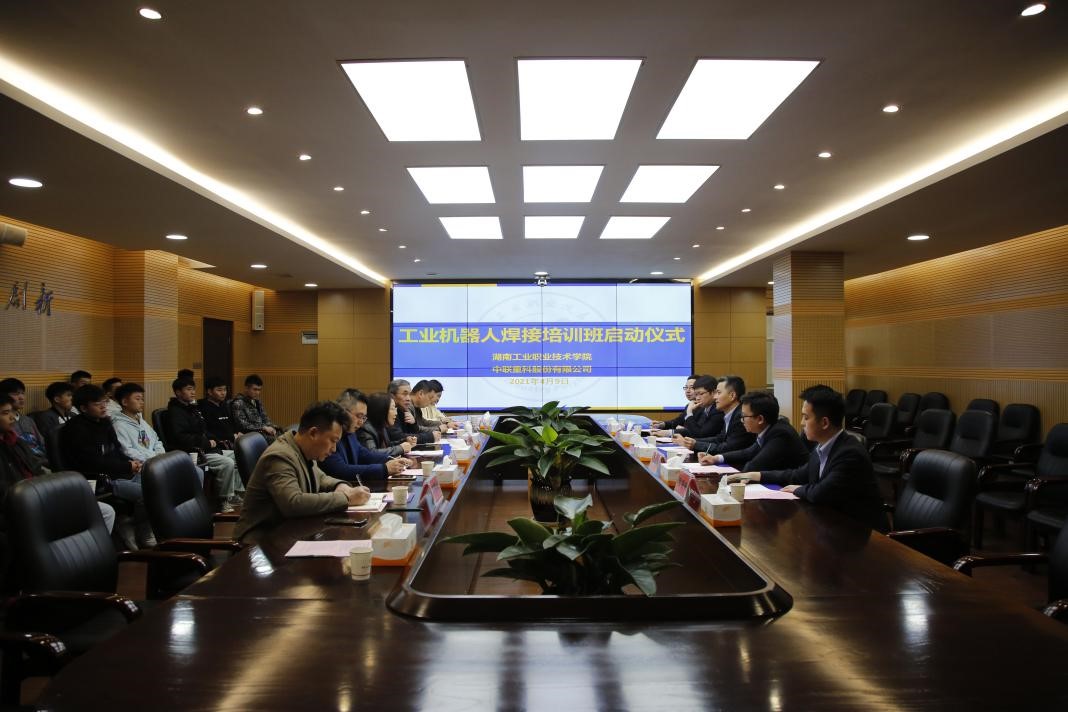 本网讯 4月9日上午,中联重科工业机器人焊接培训班启动仪式在电子pg游戏平台下载办公楼二会议室举行。电子pg游戏平台下载副校长邱丽芳、电气工程学院院长李德尧、电气工程学院副院长张宇驰、刘峥及相关教师,中联重科土方机械长沙基地副总经理朱彦辉、中联重科总部管理学院主任朱远超、中联重科土方机械工业主任张志远、中联重科总部人力资源部招聘主管谢利峰、中联重科土方机械人力资源部招聘主管邓亚林,培训班20名学员参加了本次启动仪式。