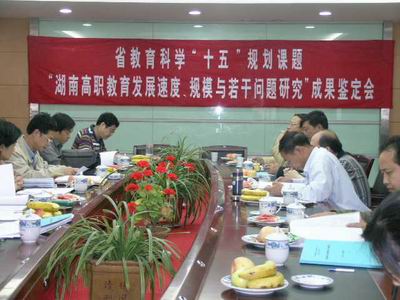 • 5月12日下午,省教育科学“十五”规划课题“湖南高职教育发展速度、规模与若干问题研究”成果鉴定会在我院召开。
