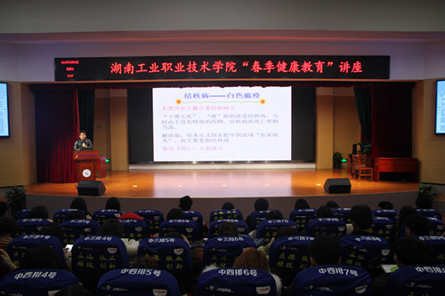 • 3月5日下午,我校后勤处、校医务联合学士街道健康促进委员会、学士街道卫生服务中心、湖南省肿瘤医院教学办等单位,在大学生活动中心开展“春季健康教育”讲座。各二级学院学生代表及辅导员400余人参加了学习...