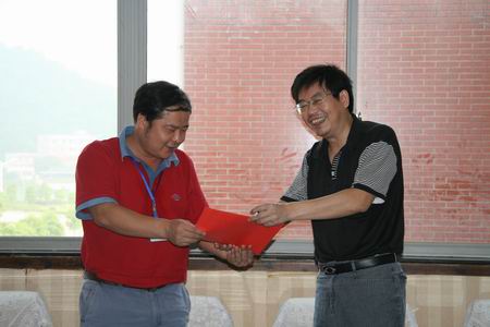 • 刘建湘院长代表全院教职工从成主任手中接过慰问金     2008年9月10日是我国第24个教师节。