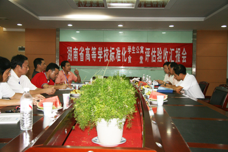 • 会议现场     9月9日下午,以湖南工业大学后勤集团总经理唐代喜为组长的湖南省高校标准化学生公寓、学生食堂检查评估专家组一行3人对我院学生食堂、学生公寓进行检查和评估。