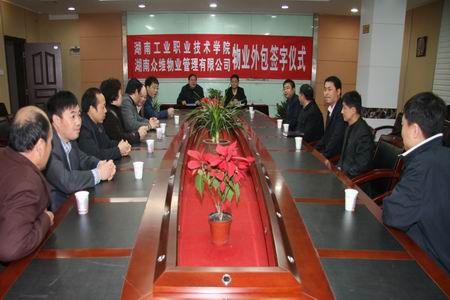 • 签字仪式现场     4月2日上午,我院与湖南众维物业管理有限公司在学院二会议室举行了物业外包签字仪式。