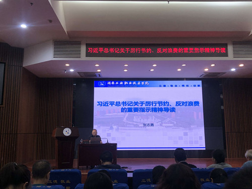 张志勇从“为何厉行节约,继承我党优良传统、反对铺张浪费,如何落实总书记的指示精神”等方面进行了详细阐述,并结合学校实际,介绍了我校在贯彻落实习近平总书记重要指示精神方面所做的工作。通过例举国情数据、国际形势等让在座的党员深刻感受到当前我国仍然存在严重的浪费现象;带领大家重温了我党厉行节约反对浪费的优良传统;并详细介绍我校正在开展的“坚决制止餐饮浪费行为切实培养节约习惯”主题实践活动的内容。他要求党员同志要提高认识并身体力行,把勤俭节约当成一种时尚的生活方式,从小事做起,带头厉行节约、反对浪费。