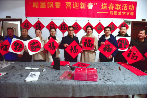 “服务空间从大到小、服务范围从工作到生活、服务内涵从环境到人文,我们后勤党支部就是要不断提升后勤服务的温度和深度,”后勤处党支部书记李陟威说“借此次迎新春、送春联活动,我们一方面向给各位教职工送去真挚的新年祝福,另一方面也是想不断丰富教职工文化生活,将公共文化服务真正落到实处。”
