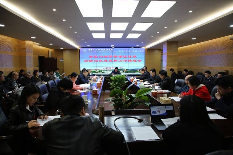 本网讯 4月10日下午,学校在办公楼第二会议室召开了内部质量保证体系诊断与改进复核工作推进会。校长向罗生,党委副书记陈超,副校长邓建国、张志勇、周梦顺,纪委书记王波,各部门(学院、部、中心)负责人、总支书记等参会。会议由周梦顺主持。