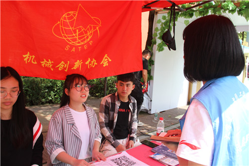 今年单招期间,还有一道特殊的风景线——社团。不少社团在校内以摆台的形式为考生提供更多的服务,机械创新协会便是其中的一个社团。协会成员讲到,因为近期省级国家级比赛较多,他们需要后备军,在此时进行宣传,也是为了吸引更多优秀的、感兴趣的新同学加入,同时也宣传了协会文化,展现了丰富的校园文化活动。