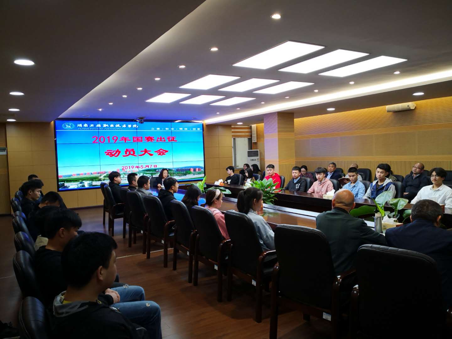 本网讯 5月7日中午,我校2019年全国职业院校技能大赛出征动员大会在办公楼3楼二会议室召开,鼓励各参赛队沉着应战,发挥最佳状态,在国赛取得优异成绩。副校长邱丽芳,教务处及相关学院负责人,各参赛队指导教师和学生参加了会议。会议由教务处副处长谭韶生主持。