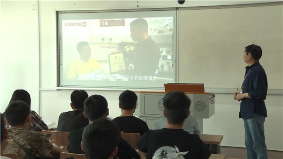 采访中,记者发现,有关廖宇钊捐骨髓的视频不仅出现在课堂上,还不停地在学校广场、操场上的大屏幕上轮番放映,吸引不少学生驻足观看。为让思政课更有“温度”,学校要求教师多从学校教师、学生、校友群体中挖掘鲜活事例来丰富教学内容,让学生身边的优秀典型来激励学生,真正达到立德树人的目的。