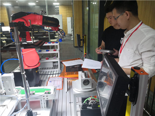 “我先移动机器人找到每个位置,再将示教点保存下来,然后通过示教器编写程序,这样机器人就可以听话地抓取原料了。”获得比赛一等奖的数控2017-4班丁亿帆同学告诉记者他获胜的诀窍,细心大胆地去尝试自己编写的程序能不能准确运行,另外,他所在的智能制造协会也提供了很好的学习氛围,“我们每天一起学习专业知识,参加实训,这次我们协会大二出了5支队伍参赛。”