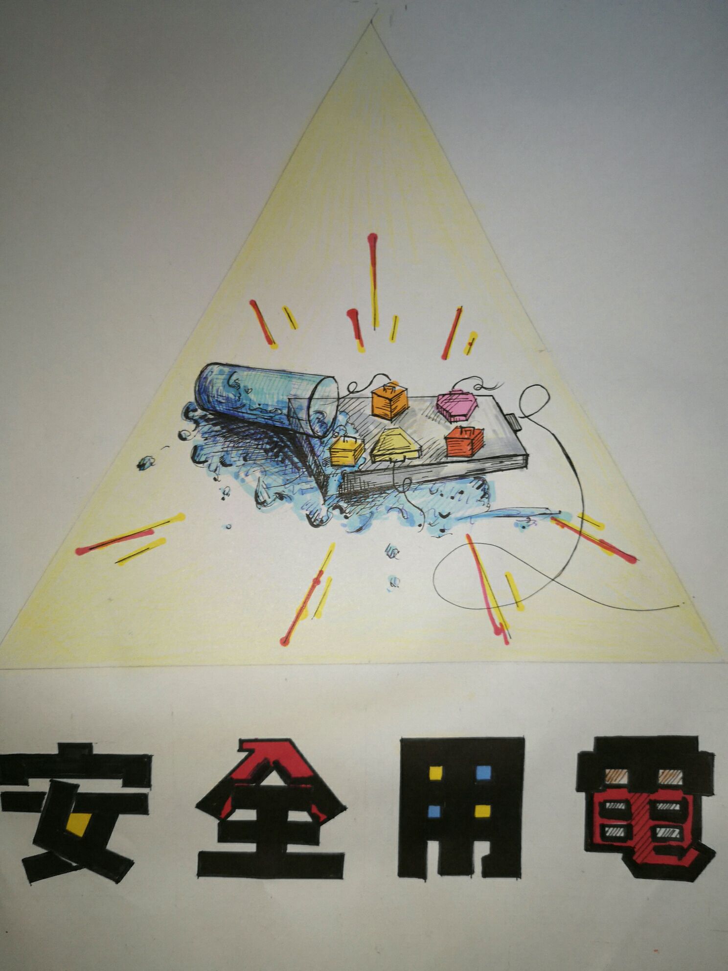 商英2018-3班的赖文玉带来作品《No Fire》(无火),一座正在喷发的火山,寝室常见的大功率电器被淹没在冒出的火苗中,表达出坚决对宿舍火源说“不”的寓意。室内2018-2班简曙的作品《用电需谨慎,防火于未燃》则描绘了一幅精致的女性头像,但头发却被明火毁于一旦,消防警示的作用不言而喻。电商2017-3班单伟杰的作品《安全用电,防火防灾》则宣传了消防安全知识,介绍了寝室用电注意事项。此次比赛共评选出了一等奖1名,二等奖2名,三等奖3名。