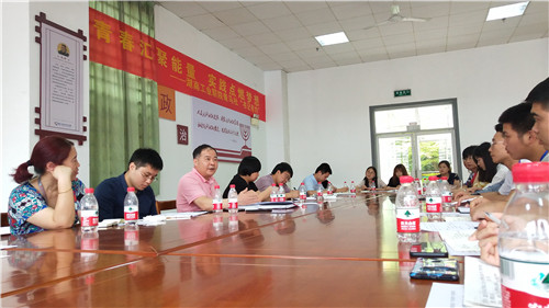 本网讯 6月25日上午,我校图书馆一楼青年马克思主义学习社活动室传来一阵又一阵欢声笑语,这里正在开展一场主题为“青春汇聚能量 实践点燃梦想”的在校大学生与校党委书记的对话活动。特殊的是,在座的18位同学,都是来自学校青马社的成员。