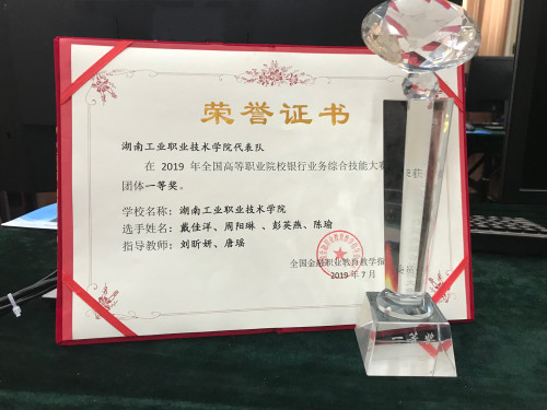 本网讯 7月4日,由全国金融职业教育教学指导委员会主办的2019年全国高职院校银行业务综合技能大赛在山东外贸职业学院泰安基地举办,来自全国的24个省市自治区的111支队伍444名选手参赛。我校派出由经济管理学院院长刘国莲担任领队,刘昕妍、唐瑶老师担任指导老师,金融管理专业陈瑜、戴佳洋、周阳琳、彭英燕4名同学组成的代表队参加了此次比赛,最终以全国第五名的好成绩,荣膺竞赛一等奖。指导老师刘昕妍、唐瑶荣获“优秀指导教师”奖。