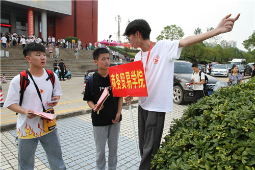 为使外地同学报到更加快捷方便,学校在火车站、高铁站等交通点设立了接站点,工作人员对新生和家长进行接待,耐心细致的为他们介绍学校的基本情况以及报到流程,并统一乘坐大巴来到学校办理相关的报到手续。各二级学院分别在一教、二教门前设立了迎新服务工作站,为新生提供免费寄存行李与咨询的服务。与此同时,学校保卫处、后勤物业工作者以及医务人员也没有停下他们的步伐,一同加入迎新服务工作当中,他们或用交通手势指导疏通车辆,或为学生家长送上凉茶解渴,或在报到处备好医疗箱随时待命。