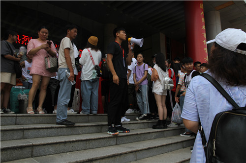 “请缴完费的同学拿着新生报到程序表到图书馆一楼北厅盖章。”机电18-1班的苏禧是迎新工作中的一名志愿服务者,为避免新生在排队缴费后产生再次排队的麻烦,从早上七点一直到下午五点,他几乎每隔一分钟就需要重复这一句话。他表示,“尽自己的力量去分担一份责任吧,看到学弟学妹们顺利报名后露出的笑容,一切努力都是值得的。”