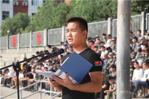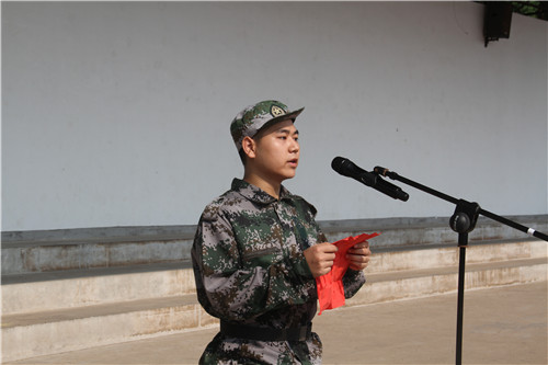 新生代表、电气工程学院三营一连李平聪发言。他表示,军训是新生进入大学的第一堂课,在这里留下的汗水、留下的笑声都将成为日后难忘的回忆。作为新生的他们,不仅是学校的新面孔,也是学校的“新血液”,他们将在军训中磨练自己的意志,为接下来的大学三年生活做好准备。