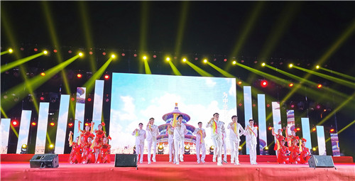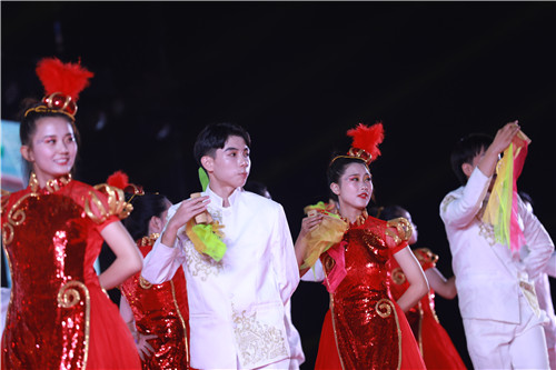 本网讯 9月27日晚,我校田径场上数千个挥动的荧光棒和手持红旗汇成了一片星海,照亮了一个特别的夜晚。“我和我的祖国”庆祝新中国成立70周年暨2019年迎新文艺晚会在这里盛大举行。