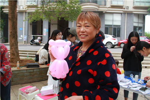 本网讯 制作丝带花,捏制气球造型,编织手工手链……10月13日,由校工会、学生DIY手工协会共同组织的“九九重阳节,浓浓敬老情”主题志愿服务活动在靳江明珠小区开展。