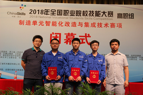 由机械工程学院廖志远、电气工程学院刘德玉担任指导教师,数维专业夏陽、李汉民,机器人专业徐铭三位同学组成的代表队获得“制造单元智能化改造与集成技术”二等奖;