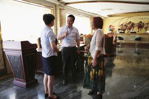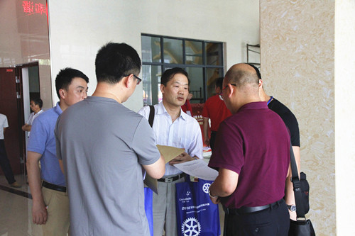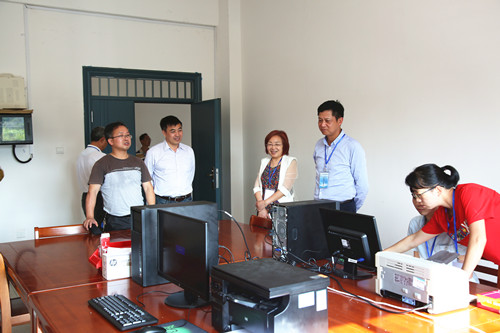 我校校长向罗生(右三)查看评分裁判工作室布置情况