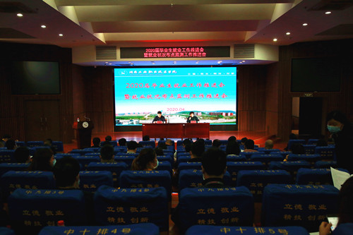 本网讯 4月22日,我校在图书馆报告厅召开2020届毕业生就业工作推进会暨就业状况布点监测工作推进会。校长向罗生、副校长成涛出席会议,各二级学院院长、党总支书记、就业信息报送员、就业干事、毕业班辅导员及班主任、招生就业处全体工作人员参加会议。会议由成涛主持。