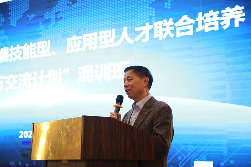 本网讯 9月24日上午,由中国教育国际交流协会主办,湖南省教育国际交流协会承办,我校协办的2020年首期“高端技能型、应用型人才联合培养百千万交流计划”混训班开班仪式在我校隆重举行。中国教育国际交流协会职培部副主任何培,湖南省教育厅国际交流处处长周芳友、湖南省教育国际交流协会副会长杨栋梁、我校党委书记刘建湘、副校长董建国以及来自全国各高职院校的80名老师参加了开班典礼。