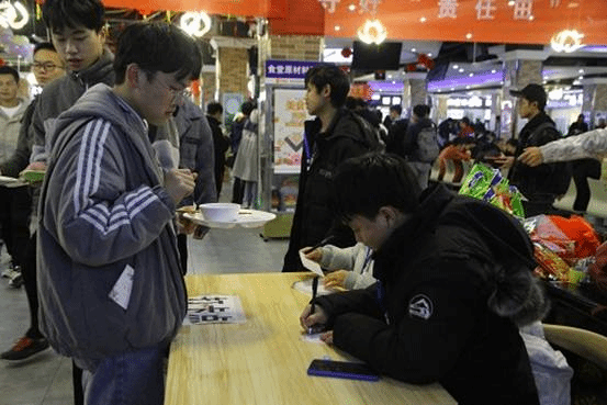 在食堂摆台处,同学们手持光盘排起了长长的队伍,等待着积点。据了解,在美食节期间,学生用饭完毕后凭借手中光盘可领取积点卡,积点一次可免费领取酸奶等奖品,积点满十次可领取十五元餐券。
