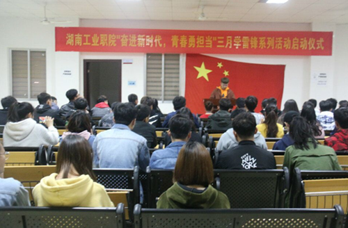 仪式上,学生干部代表代博仁同学宣读了由校团委、校学生会发起的“青春与文明同行”——文明公约倡议书,号召同学们发扬和践行雷锋精神,从生活点滴入手,立足岗位、脚踏实地,文明、礼貌、友爱、诚信、奉献,争做新时代大学生;李陟威宣读了“奋进新时代 青春勇担当”三月学雷锋系列活动方案,希望同学们紧跟时代步伐,做新时期弘扬和传播雷锋精神的种子,把雷锋精神广播在祖国大地上。