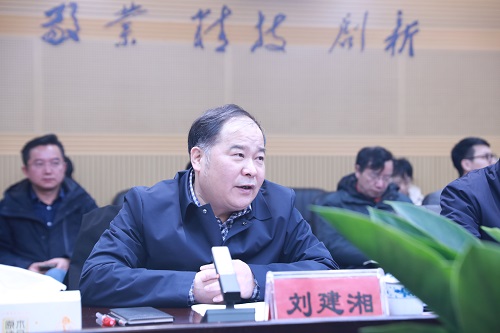 党委书记刘建湘从我校成立楚怡教育学院与楚怡职业教育研究所、加强楚怡职教文化建设、启动楚怡系列中心建设、实施新一轮“校校结对帮扶工程”等方面汇报了楚怡职教品牌建设的推进情况,并从加强组织领导、完善学校办学条件等方面介绍了我校转设职教本科的推进情况。同时,他针对我校推进合并转设与楚怡品牌建设过程中存在的困难,提出了相关建议。