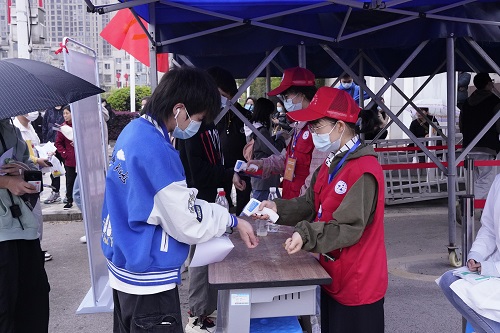 “你好学长,请问一下1403是哪个教室?” “同学你好,这是指1教学楼4楼的第三个教室,你沿着这个广场直走,尽头右边红色的建筑就是1教学楼。”……当考生碰到疑惑之处时,学校志愿者总是及时帮助他们,指引他们。教学路、岔路口、广场上……穿着红色小马甲的志愿者,为考生们积极服务着。答疑解惑、指引带路、送水问候……志愿者们的热情服务,让这个春天变得更加温暖。